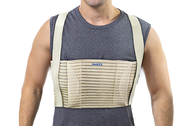 Indicado para suporte e estabilização da região torácica no pós-operatório de esternotomia e outros procedimentos da região do tórax.
